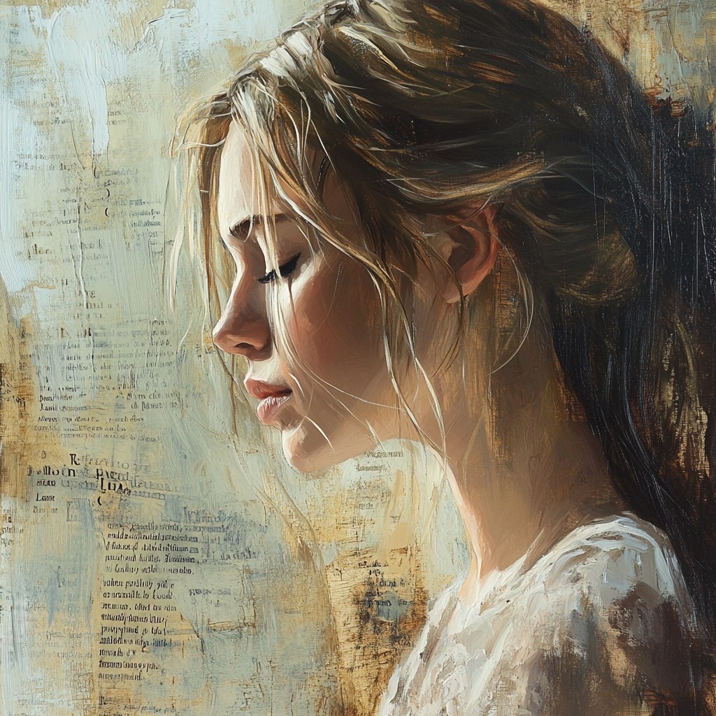 Создано на основе запроса: a profile of a woman, beautiful image. She is filled with scripture. She is in a pose of surrender. She is a perfect example of peace and stillness --- Автоперевод: Профиль женщины, красивое изображение. Классно выглядит? 🤔 https://dzen.ru/id/65c0c65c86e4f837c27b24d7 #ИИ #AI #нейросеть #midjourney #art