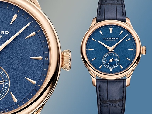 Швейцарский ювелирный дом Chopard в рамках сдержанной коллекции для Watches and Wonders Geneva 2025 обновил свою вторую по возрасту модель коллекции L.U.C новой версией Quattro Mark IV из этичного розового золота с 9-дневным запасом хода в соответствии с новейшим дизайнерским языком бренда. Это модель с самым большим запасом хода в коллекции L.U.C с характерным индикатором запаса хода как основным элементом дизайна. В новой версии индикатор запаса хода размещен со стороны механизма для более минималистичного циферблата. Модель Quattro 2024 дебютировала в 39 мм-корпусе, с диаметром на миллиметр меньше предыдущих версий и более тонким профилем. Корпусное кольцо с вертикальной сатинированной отделкой создает контраст с полированным безелем и задней крышкой. Гальванический циферблат с матовой текстурой глубокого темно-синего цвета, накладными метками в форме елочки, стрелками из розового золота — новый мотив в линейке Quattro. Сердцем механизма является новый калибр 98.09-L с 9-дневным за