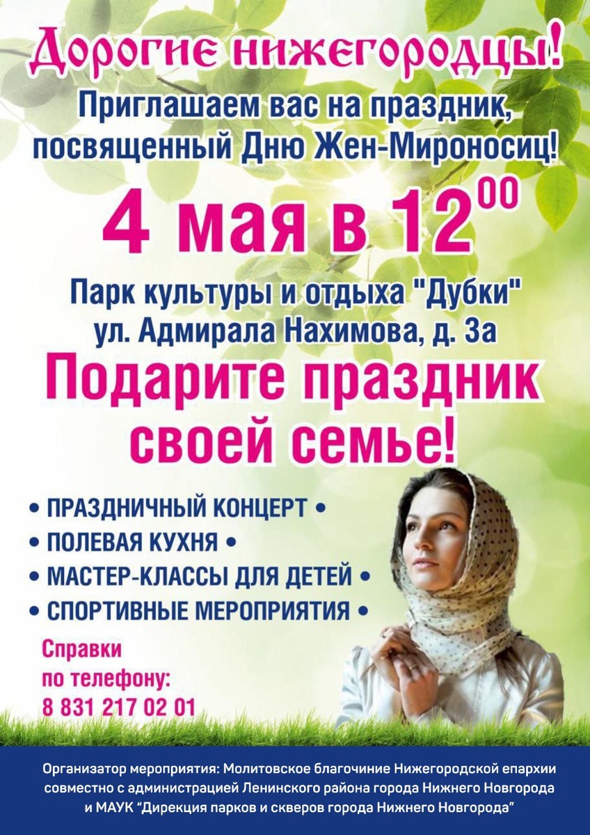 π³ ΠΠΎΠ»ΠΈΡΠΎΠ²ΡΠΊΠΎΠ΅ Π±Π»Π°Π³ΠΎΡΠΈΠ½ΠΈΠ΅ ΠΠΈΠΆΠ΅Π³ΠΎΡΠΎΠ΄ΡΠΊΠΎΠΉ Π΅ΠΏΠ°ΡΡ ΠΈΠΈ ΠΏΡΠΈΠ³Π»Π°ΡΠ°Π΅Ρ 4 ΠΌΠ°Ρ Π² ΠΏΠ°ΡΠΊ Β«ΠΡΠ±ΠΊΠΈΒ» Π½Π° ΠΏΡΠ°Π·Π΄Π½ΠΈΠΊ, ΠΏΠΎΡΠ²ΡΡΠ΅Π½Π½ΡΠΉ ΠΠ½Ρ ΠΆΠ΅Π½-ΠΌΠΈΡΠΎΠ½ΠΎΡΠΈΡ