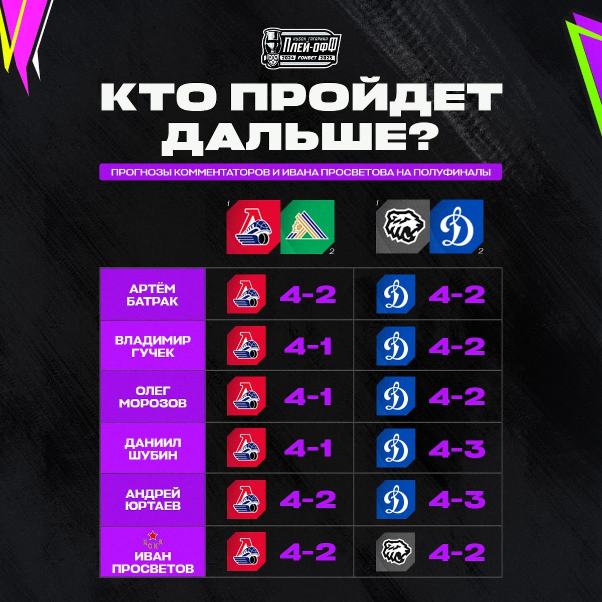 «Всем запомнились камбэки „Трактора“, но смущает, что челябинцы слишком часто оказывались в ситуации, когда необходимо героически спасать игру». Комментаторы телеканалов КХЛ и вратарь ЦСКА Иван Просветов поделились своими прогнозами на серии полуфиналов. 🏆#КубокГагарина