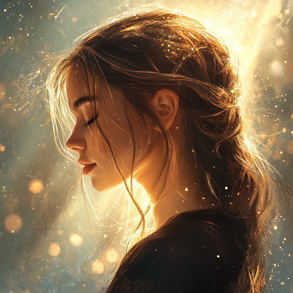 Создано на основе запроса: a profile of a woman, beautiful image. She’s a defender. She protects those around. She is beautiful, and Gods light is within her. Magic style --- Автоперевод: Профиль женщины, красивое изображение. Красиво выглядит? 🤔 https://dzen.ru/id/65c0c65c86e4f837c27b24d7 #ИИ #AI #нейросеть #midjourney #art