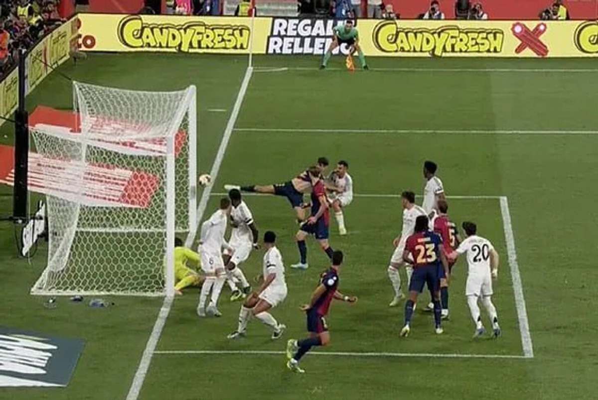 На 43-й минуте полузащитник каталонцев Дани Ольмо закрутил мяч с углового, где на дальней штанге боролись Пау Кубарси и Дани Себальос. Защитник «Барсы» мог занести мяч в пустую часть ворот «Реала», но упал в борьбе с Себальосом. Арбитр Рикардо де Бургос Бенгоэчеа не усмотрел фола в этом эпизоде.