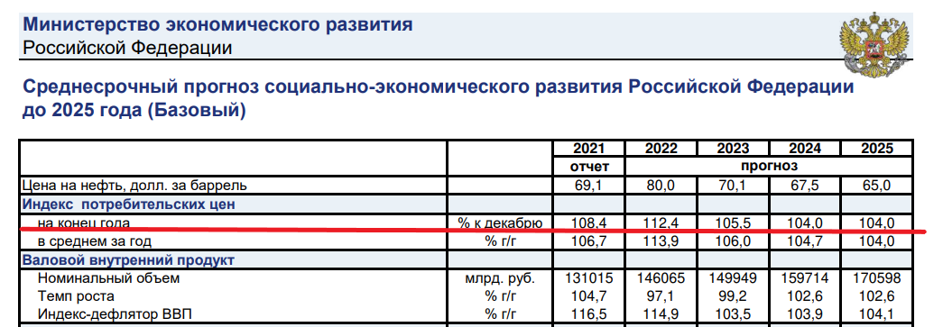 Инфляция уже много лет является краеугольным камнем наших финансовых властей, как говорят некоторые: "они готовы угробить экономику ради низкой инфляции". В частности, ЦБ РФ с завидной регулярностью делает сомнительные действия в попытках не то чтобы победить, а хотя бы предсказать инфляцию на год вперёд. А неделю назад прошла новость о том, что: "Минэкономразвития повысило прогноз по инфляции в РФ в 2025 году до 7,6% с 4,5% в сентябрьской версии прогноза". Не прошло и полу года с доклада, а он уже потерял актуальность и приходится переписывать прогнозы буквально на коленке. Оказывается Минэкономразвития тоже вместе с ЦБ играет в игру: не угадай будущую инфляцию, но потрать деньги налогоплательщиков на прогнозы. Базовый сценарий по инфляции у Минэкономразвития согласно докладу от 28.09.22 состоял в следующем: 2023 год - 6%, 2024 год - 4.7%, 2025 год - 4%, разумеется ничего не сбылось. Ждём завершения 2025 года, для подведения итогов нового прогноза. ЦБ также держит марку и меняет сво