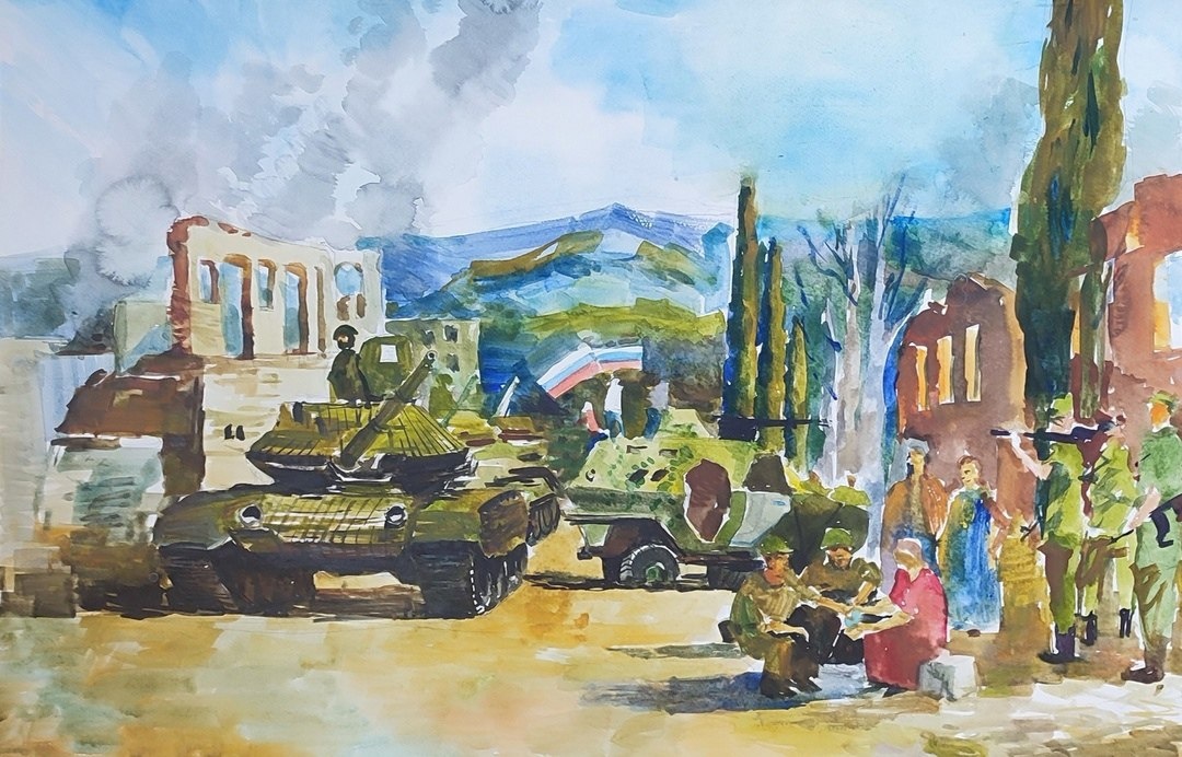 ↗ Саровский художник Анатолий Стрелков в преддверии празднования Дня Победы нарисовал новую акварельную работу