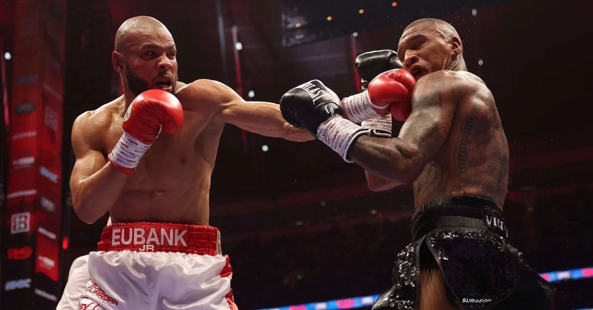 В первом раунде Бенн активно прессингует в то время, как Юбенк неплохо работает джебом, пока Конор активнее, но Крис точнее. 10-9 Юбенк лидирует. Во втором раунде Конор пристрелялся и уже Крис начинает больше промахиваться, пока Конор ни в чём не уступает своему оппоненту. 19-19. В третьем раунде Бенн продолжает свой прессинг и в одном из эпизодов ему удаётся потрясти Криса. 29-28 Конор выходит вперёд. В четвёртом раунде Юбенк просыпается и сам идёт в атаку, но видно, что он психует, наносит удар после команды стоп, раунд проходит с преимуществом Криса. И у нас снова равный счёт 38-38. В пятом раунде Конор оказывается на канвасе после толчка Юбенка, в целом этот раунд Юбенк проводит гораздо лучше. 48-47 Крис выходит вперёд. В шестом раунде Бенн снова взвинчивает темп, очень хороший бой, оба вынуждены показывать максимум. После первой половины боя ничья 57-57. В седьмом раунде Юбенк получает предупреждение от рефери. Но в то же время это пока был лучший раунд от Криса, стал чаще он попа