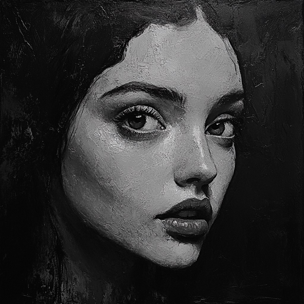 Создано на основе запроса: semi ralistic reinassance style portrait, full face, black and white