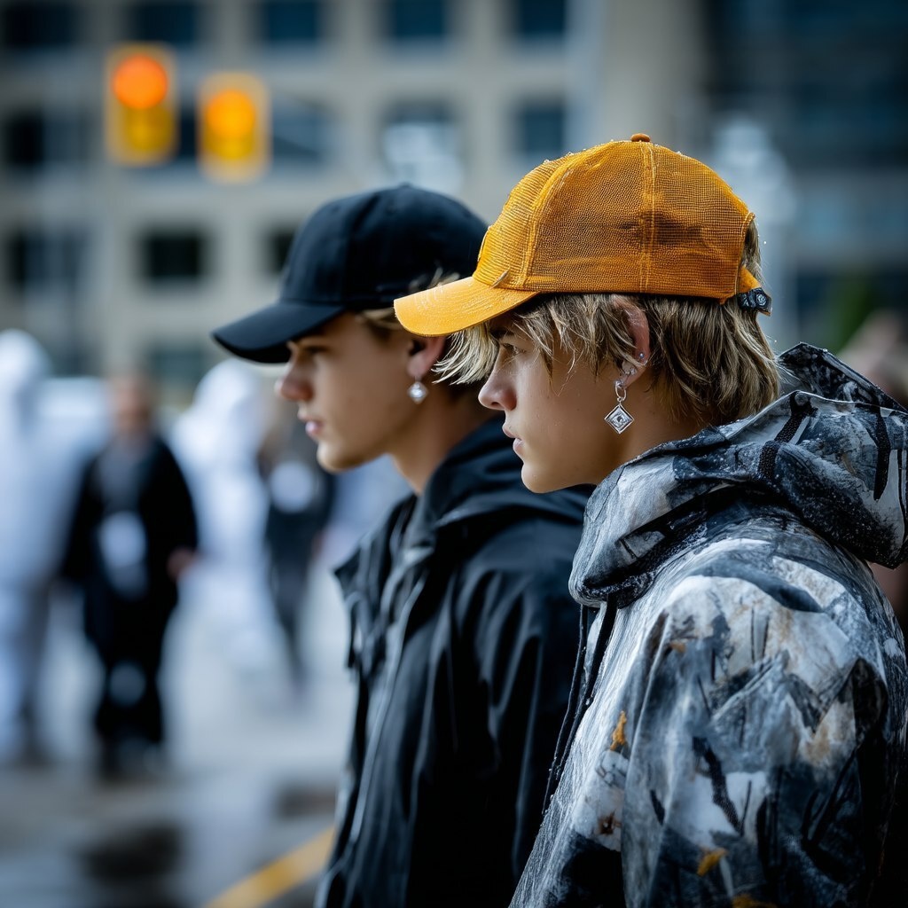 Создано на основе запроса: 2 young college royal males, wearing a black and white camouflage fashion with a backwards yellow cap with mop hairstyles dirty dark blond hair, walking with his partner, walking to a high end restaurant, wearing pink diamond encrusted earring studs --- Автоперевод: 2 молодых Королевских Королевских Королевских Королевских мужчин, в черно -белом камуфляжном стиле с обратной желтой кепкой с прическами для копейки грязные темные светлые волосы, ходя со своим партнером, ходя в ресторан высокого класса с розовыми алмазными серьги Хорошо выглядит? 🤔 https://dzen.ru/id/65c0c65c86e4f837c27b24d7 #ИИ #AI #нейросеть #midjourney #art