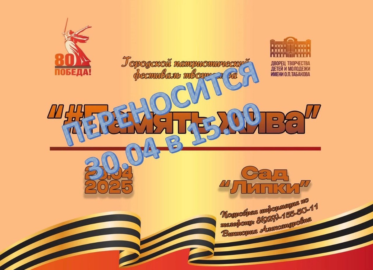 ‼В связи с погодными условиями церемония награждения городского конкурса "#Память жива" переносится на 30.04 в 15.00
