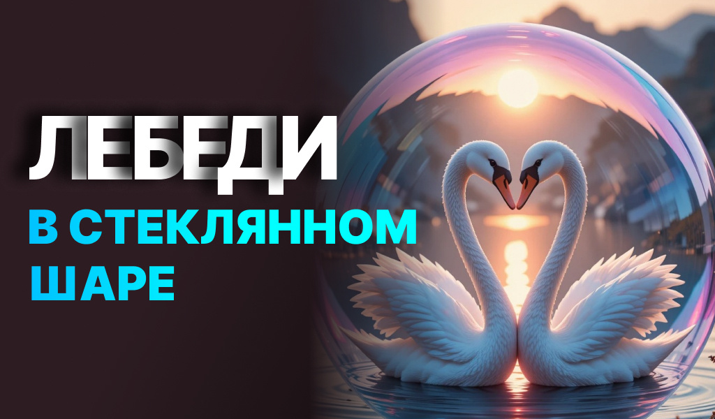 На заднем фоне тенмые тона, линия горизонта, большие камни, среди камней редкие тонкие молодые ростки растений, которые пробиваются сквозь камни и рассветное солнце, размыто. Запрос на английском (в нейросеть вставляем на английском): Draw two swans that are in a glass ball on a beautiful pond, the swans are turned towards each other and their necks are in the shape of a heart. Bright and colored sunlight reflects off the balloon. Pink and blue backlighting on the sides, bright colors. Sharp focus. In the background shaded tones, horizon line, large rocks, among the rocks rare thin young sprouts of plants that break through the rocks