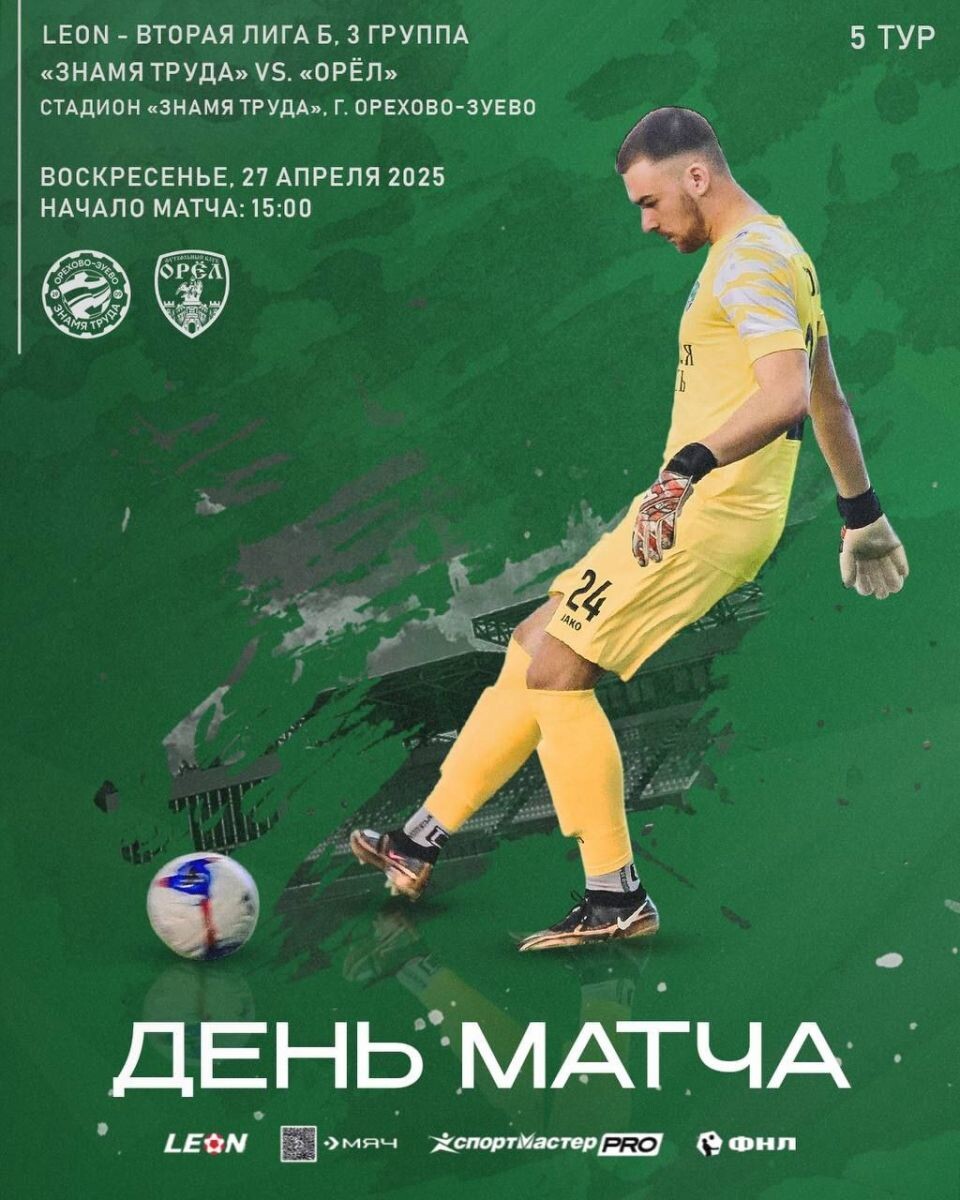 На стадионе “Знамя Труда” дан старт матчу 5-го тура Второй лиги, дивизиона Б между командами “Знамя Труда” и “Орел”