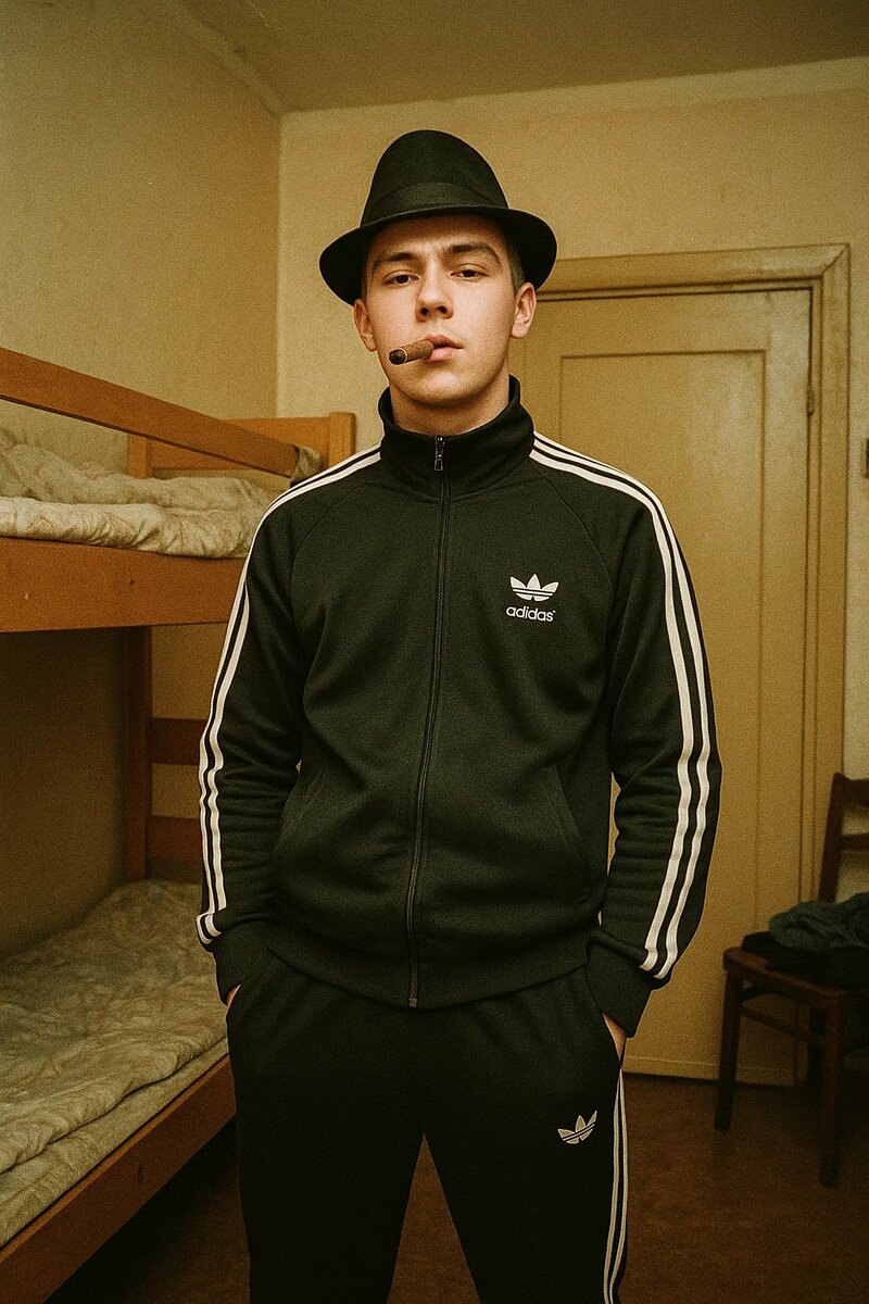 – Его поза — уверенная и спокойная, взгляд — сосредоточенный: словно он только что покинул важную сделку... или готовится к следующей. По краю картины шли "царапины времени" — будто это кадр из старой плёнки.