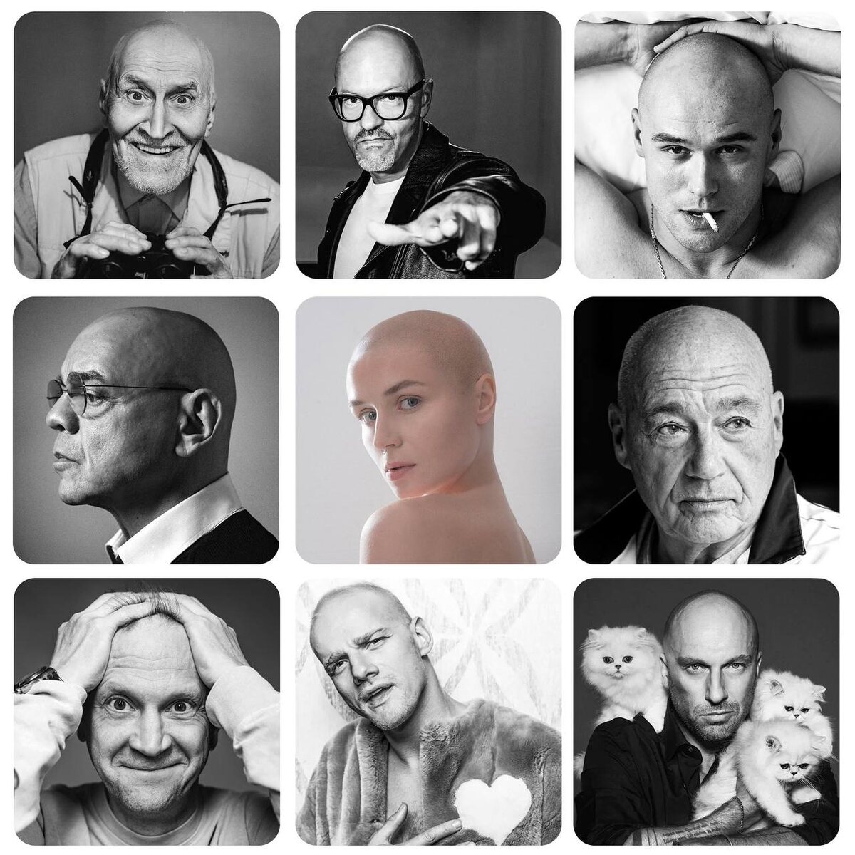 Во-первых, это красиво! Лысые знаменитости в 📸 @isxakov Хотел бы ещё снять Юру Борисова, Александра Розенбаума ... Кого ещё я забыл?! Подскажите, пожалуйста 🙌