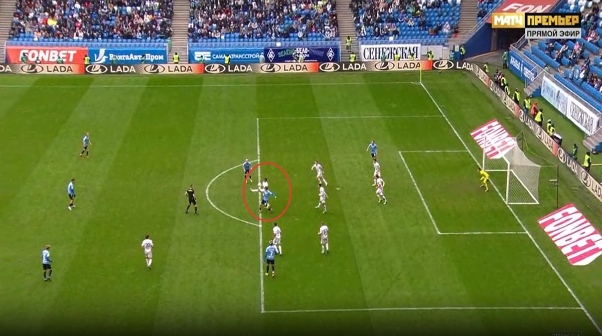 Крылья Советов-Оренбург 82 мин. В сложной игровой ситуации, ошибается Сухой и назначает штрафной удар. Правильное решение принимает арбитр на ВАР Сергей Иванов и сообщает что нарушение было на линии штрафной площади. Игрок команды Оренбург сыграл рукой. Оценка арбитру не снижается. Правильное решение: 11-м удар