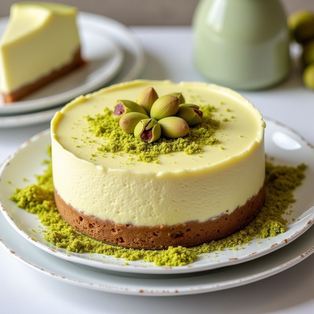 Фисташковый чизкейк Ингредиенты⤵️ Для основы: 🔸Печенье песочное — 150 г 🔸Фисташки — 50 г 🔸Масло сливочное — 70 г Для начинки: 🔸Сыр сливочный — 500 г 🔸Сахар — 120 г 🔸Фисташковая паста — 100 г 🔸Сливки 33% — 150 мл 🔸Яйца — 2 шт. 🔸Ваниль — 1 ч. л. Приготовление🍮 1. Печенье и фисташки измельчить в крошку, смешать с растопленным маслом. Утрамбовать в форму, охладить 30 минут. 2. Взбить сыр с сахаром и фисташковой пастой до гладкости. Добавить яйца по одному, затем сливки и ваниль. Вылить на основу. 3. Разогреть духовку до 160°C. Выпекать на водяной бане 50-60 минут. Остудить в приоткрытой духовке, затем охладить 4 часа. 4. Украсить фисташками. Рецепт дня #чизкейк #фисташковый_чизкейк #фисташки #орехи #десерт