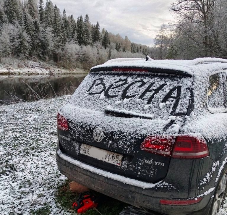 Где-то в Крыму девушка в розовом сарафане, поскольку там тепло. Но где-то у нас в Тверской области сарафаны и весна откладываются постоянно на неопределенный срок.