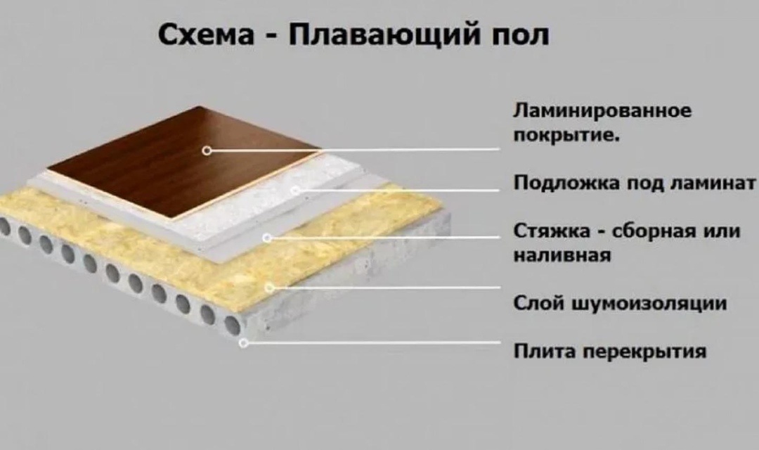 Плавающий пол — это многослойная конструкция, в которой ни один слой (включая финишное покрытие) не крепится жестко к основанию или стенам. Между слоями и стенами обязательно оставляют зазор, чтобы вся система могла свободно "играть" при нагрузках, усадке здания и температурных изменениях.