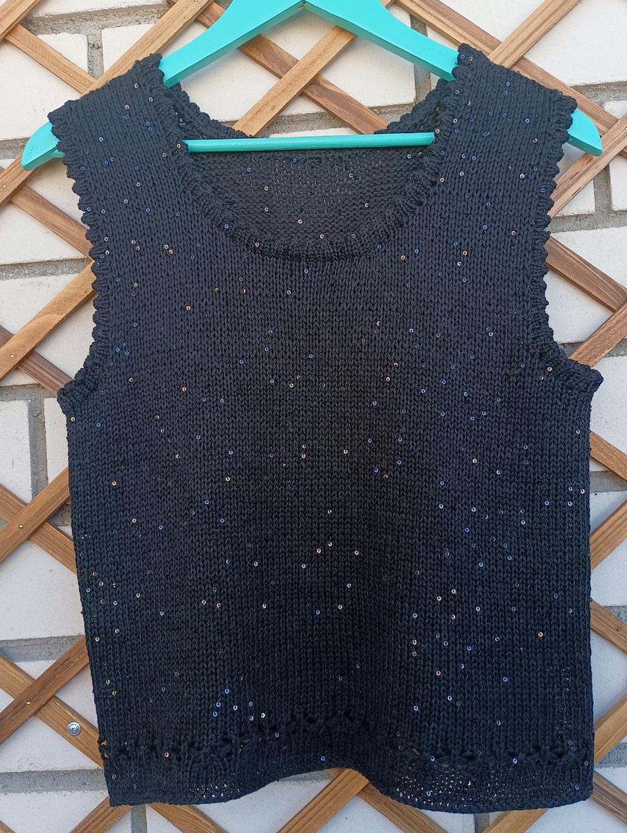 Забегая вперед, скажу, что из 4 топов коллекции "Лето в пайетках" только две предназначаются "заказчице", один я связала для дочки и один, не жданно не гаданно, попал в мой гардероб. 🙌