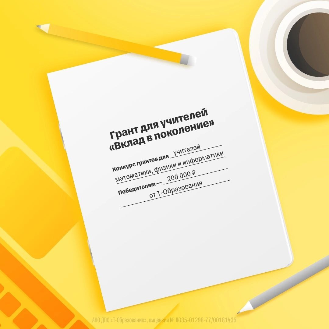 200 000 ₽ учителям математики, информатики и физики из школ, колледжей и организаций дополнительного образования со всей России 🏆 Открываем регистрацию на грантовый конкурс для педагогов «Вклад в поколение». Главный приз — грант 200 000 рублей, который можно потратить по своему усмотрению. А кроме денежного приза победители получат: 💫 Методическую поддержку. Доступ к материалам и курсам Т-Образования. Пригодится, чтобы дополнить школьную программу и при желании провести в классе игровой урок с интересными и нестандартными задачами. 💫 Возможность стать частью сообщества талантливых учителей со всей страны: вы сможете общаться и обмениваться опытом. 💫 Приглашения на мастер-классы, лекции по предметам, вебинары для развития личных навыков, экскурсии в офисы Т-Банка и многое другое Подать заявку и пройти конкурсный отбор можно до 16 июня включительно. Расскажите о конкурсе своим учителям, участвуйте сами или поделитесь ссылкой с коллегами: https://vk.tbank.ru/grant2025