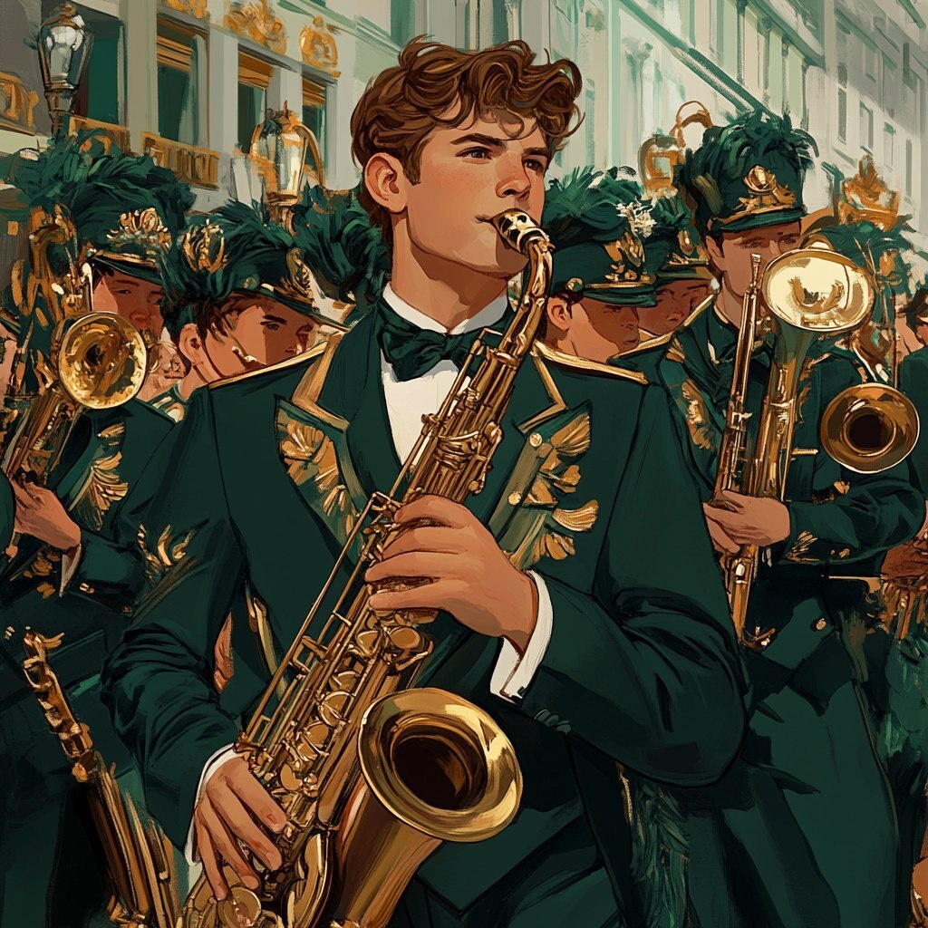 Создано на основе запроса: the parade musician in the dark green tuxedos with gold details on it --- Автоперевод: Парадный музыкант в темно -зеленых смокингах с золотыми деталями на нем Какое твое мнение? 🤔 https://dzen.ru/id/65c0c65c86e4f837c27b24d7 #ИИ #AI #нейросеть #midjourney #art