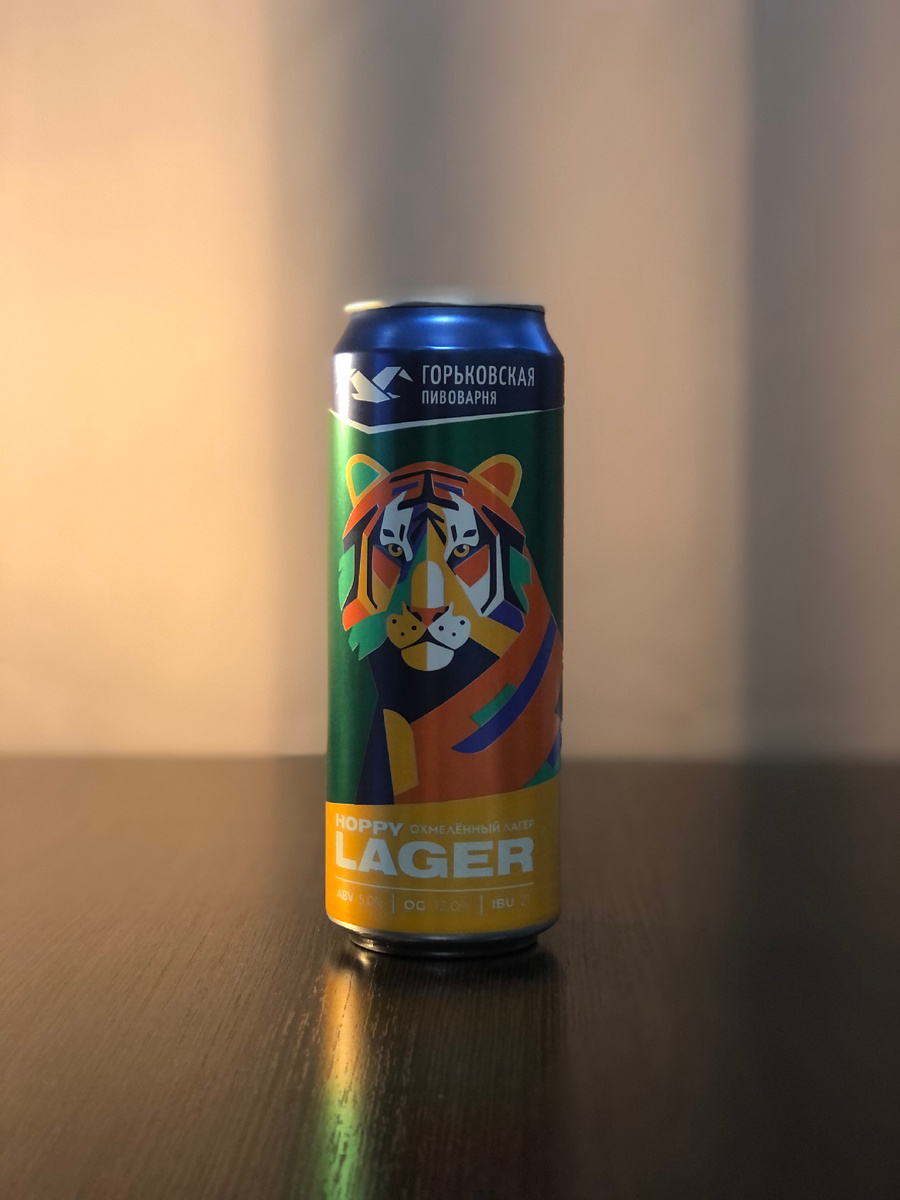 На днях я писал, что встретил в продаже базовые и хорошо всем знакомые IPA и APA от Горьковской пивоварни в новом дизайне. Вернее сказать в новом формате, раньше пиво продавалось только в стекле, теперь же их можно купить и в банке объемом "российской пинты". Там же там была в наличии третья позиция, которой оказался охмеленной лагер, он же India Pale Lager, с тигром на этикетке. И я даже на мгновенье задумался, а было ли и раньше это пиво в "зверинце" Горьковской. Поняв, что это абсолютно новая позиция в базовой линейке пивоварни, решено было проверить, "что за лев этот тигр"? Какой-то информации о релизе на официальном сайте пивоварни найти не удалось, благо на банке заботливо все подробно расписано: С этой банки на вас смотрит тигр. Этот сильный и яркий зверь знает, чего хочет, и всегда получает лучшее. Охмеленный лагер от Горьковской сочетает в себе лучшее, что может быть в пиве - легкость и баланс лагера и удивительную ароматику хмелей с цитрусовыми и еловыми нотками. Откройте ох