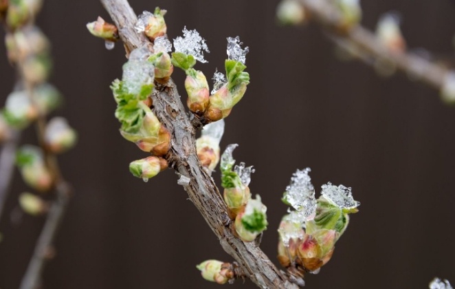 Чтобы не подмерзли деревья, рано цветущая слива и вишня, и кустарники, чтобы радовала урожаем клубника, уже начале цветения чувствительная к 0…-1 С. И яблоня, цвет которой боится -2 С.