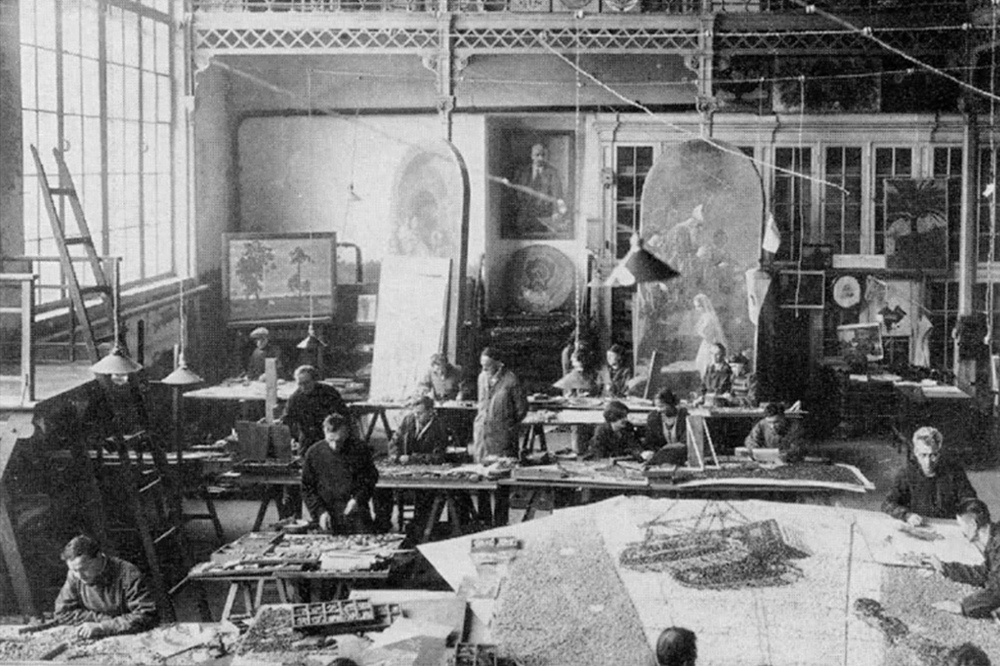 После 1925 года мозаика вернулась, Владимир Александрович Фролов, по настоянию архитектора Алексея Щусева, известного создателя мавзолея Ленина выполнял траурный зал мавзолея. Для этой работы мастер использовал лучшее цветное стекло, которое ранее предназначалось для заказов императора Николая II.