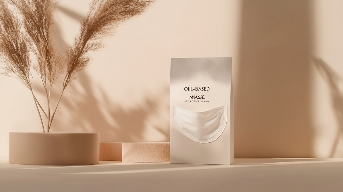 Создано на основе запроса: This image showcases a flat product shot of a skincare sheet mask. The background features a soft beige gradient, creating a warm and calming atmosphere. The packaging is positioned on the left side of the frame, with a simple white design displaying the brand's logo and the product name "OIL-BASED MASD" in modern, clean font. The packaging is slightly off-center, while the sheet mask itself is semi-translucent white and is shaped to mimic the contours of the face, highlighting its unique design. The mask partially overlaps the packaging, and gentle lighting accentuates its texture, creating a balanced and harmonious composition. The overall image conveys a fresh, modern, and refined feel, emphasizing the product's premium skincare qualities. --- Автоперевод: Это изображение демонстрирует плоский продукт снимка листовой маски по уходу за кожей. Как тебе эта генерация? 🤔 https://dzen.ru/id/65c0c65c86e4f837c27b24d7 #ИИ #AI #нейросеть #midjourney #