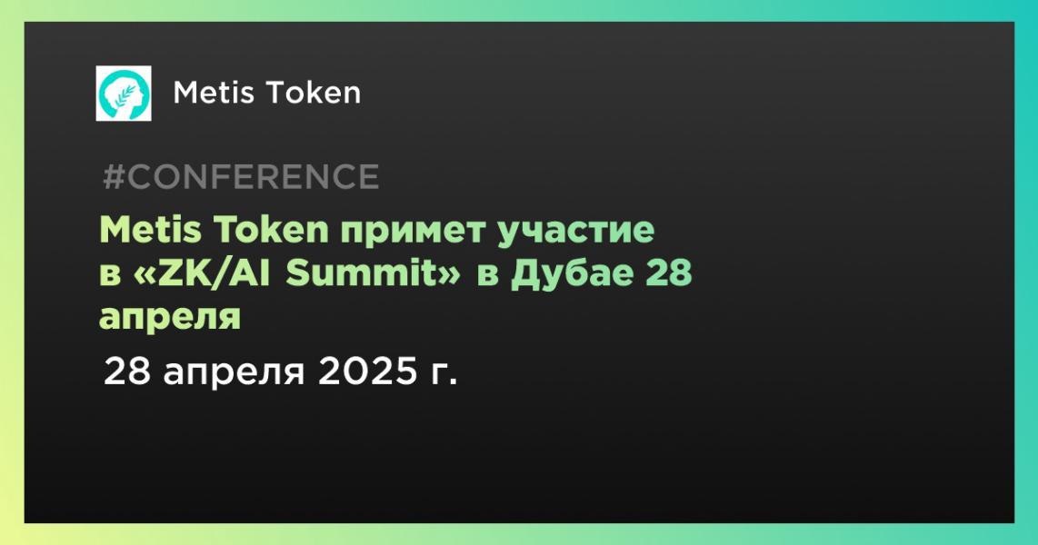 Metis Token примет участие в «ZK/AI Summit» в Дубае 28 апреля