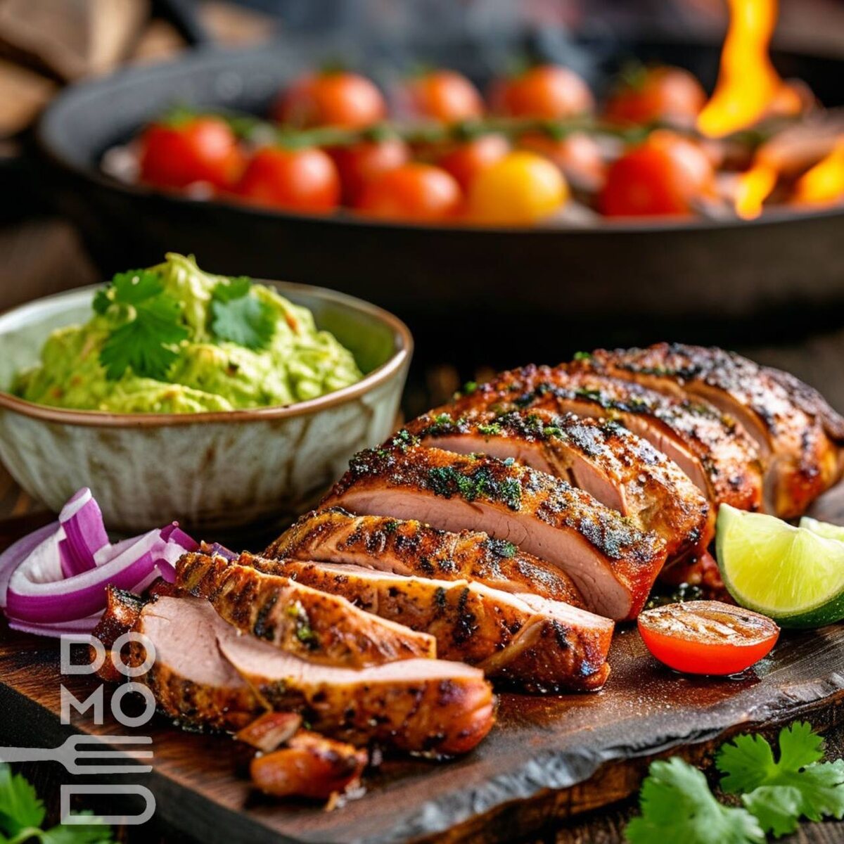 🍗 ФИЛЕ ИНДЕЙКИ С ГУАКАМОЛЕ Идеальный баланс нежного копчёного мяса и свежего мексиканского соуса. ⏳ Время приготовления: • Подготовка: 30 мин • Маринование: 2 часа • Приготовление: 25 мин • Отдых мяса: 10 мин 🍽 Порций: 2 🛒 ИНГРЕДИЕНТЫ Для индейки: • Филе индейки (грудка) — 350 г • Лимон (сок) — 3 ст.л. • Тростниковый сахар — 1 ч.л. • Оливковое масло — 20 мл • Морская соль крупного помола — 1/2 ч.л. • Свежемолотый чёрный перец — 1/4 ч.л. Для гуакамоле: • Авокадо Хасс — 2 шт. (спелые, но не перезрелые) • Красный лук — 1/2 средней луковицы • Помидор черри — 5-6 шт. (или 1/2 крупного) • Кинза — 2 веточки с листьями и стеблями • Лайм (сок) — 2 ст.л. • Перец халапеньо — 1/4 шт. (по желанию) • Морская соль — 1/3 ч.л. Для гриля: • Щепа яблони/вишни — горсть 👩 ДЕТАЛЬНЫЙ РЕЦЕПТ 1️⃣ Приготовление гуакамоле 1. Подготовка авокадо: - Разрежьте плоды вдоль, удалите косточку - Ложкой извлеките мякоть в керамическую миску - Вилкой разомните до состояния густого пюре с мелкими кусочками 2. Д