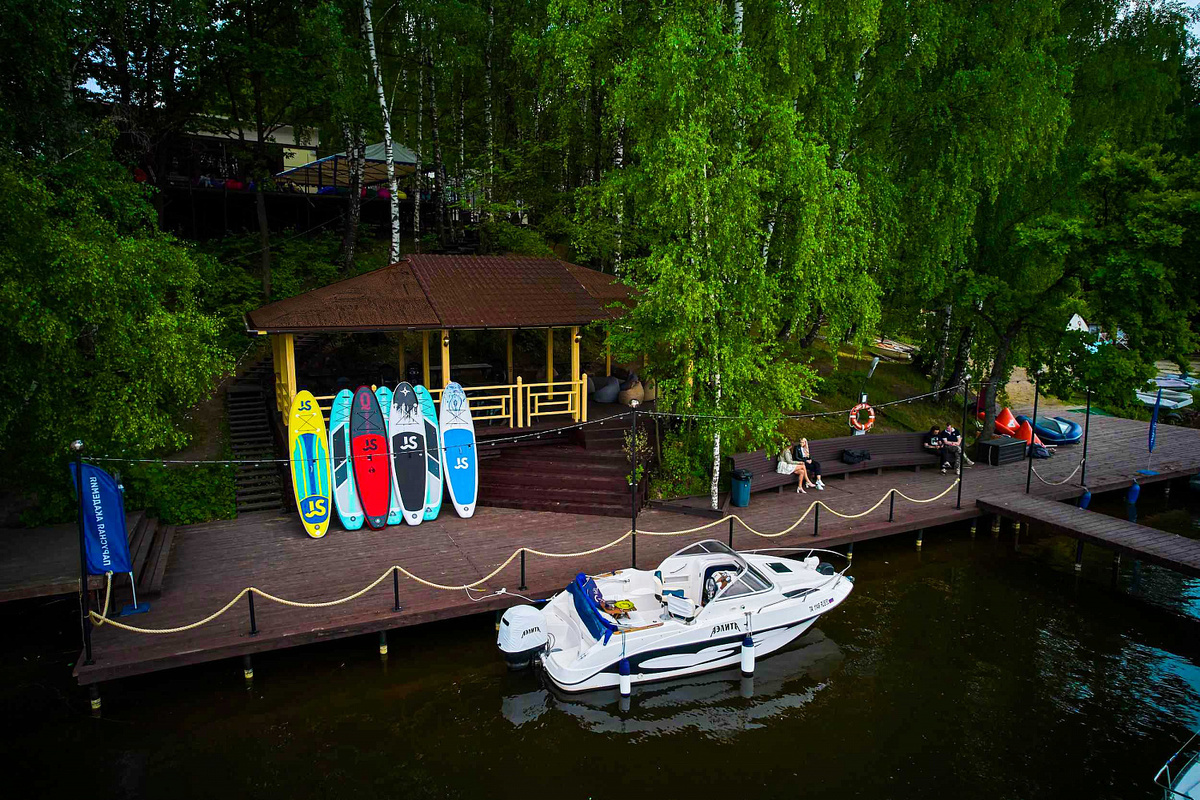 SUP-серфинг — это легкий способ включить тело, очистить голову и отдохнуть душой. А в Подмосковье для этого есть всё: от тихих бухт до речных маршрутов и этнических парков. Кататься на сапе можно когда угодно: рано утром, когда вода спокойная, на закате, когда всё вокруг превращается в магию, или даже в обеденный перерыв, если повезло быть рядом с водой. Мы собрали 5 лучших локаций в Подмосковье, где можно встать на доску и просто кайфануть от воды и вида. Яхт-клуб «Ореховая бухта» расположен на Пироговском водохранилище, всего в 9 км от МКАД. Здесь — тихая гладь воды, зелень по берегам, аренда сапов без залога и простор для катания. Можно приехать с Москвы на полдня, взять доску от 900 рублей за 60 минут и отправиться исследовать бухту. Всё с комфортом: есть пляж, душ, кафе с домашней кухней, лежаки и возможность остаться с ночёвкой. Для новичков проводят инструктаж и выдают спасжилеты. Идеальное место, чтобы выбраться отдохнуть с друзьями на природу на выходные. Место: Московская обл