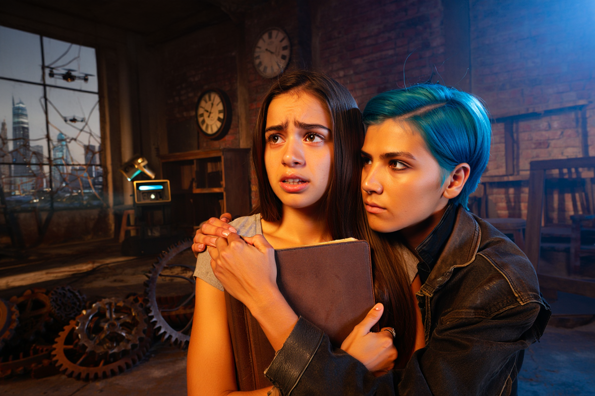 Они пробрались в заброшенный склад, где стены были увешаны старыми часами, шестерёнками и схемами. В центре стоял проектор, сделанный из латуни и стекла — смесь стимпанка и технологий. Ника включила его, и в воздухе появилась голограмма.
