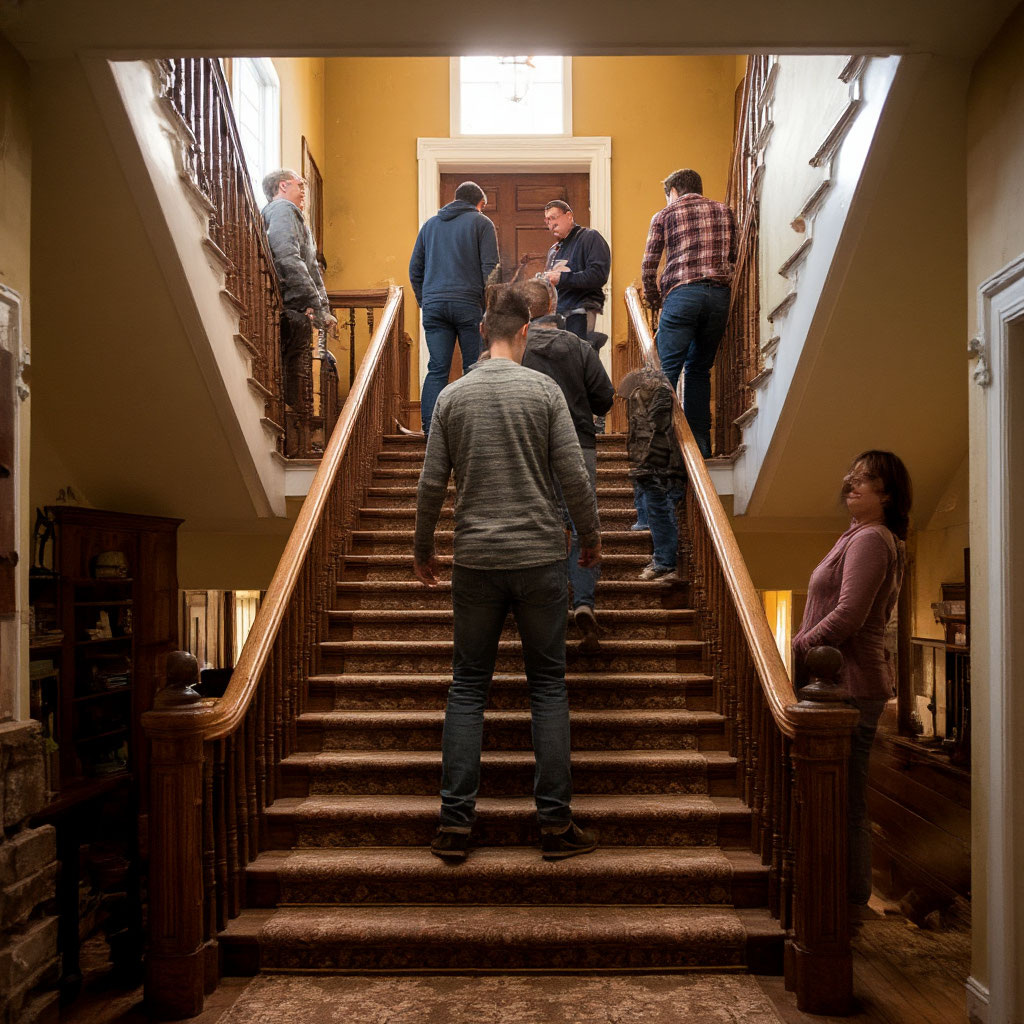 Лестничная клетка — не трофей и не крепость. Это просто наше общее место, где сходятся жизни, судьбы и… стулья с советским прошлым.