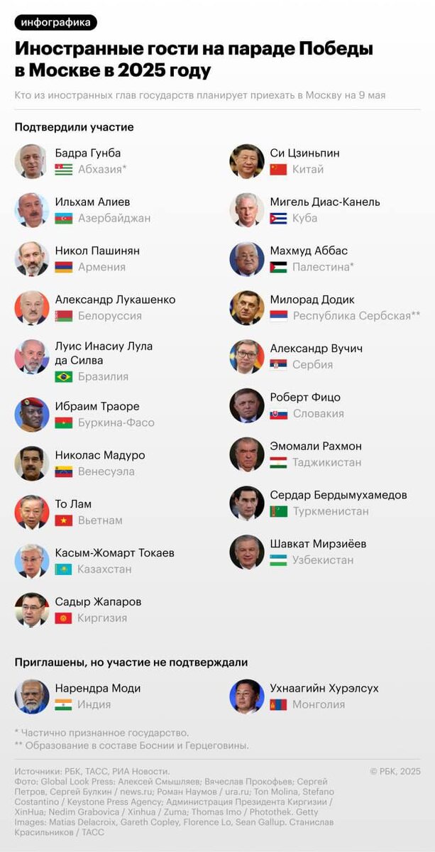 📝 О намерении присутствовать на параде Победы в Москве заявили лидеры 19 стран