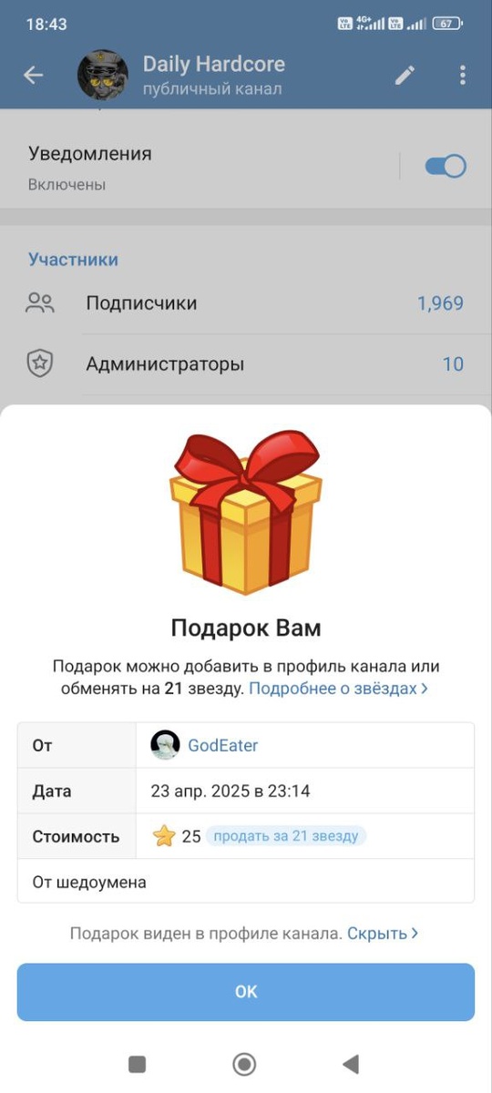 Шэдоу Мэн, так же спасибо за подарок в телеграмме