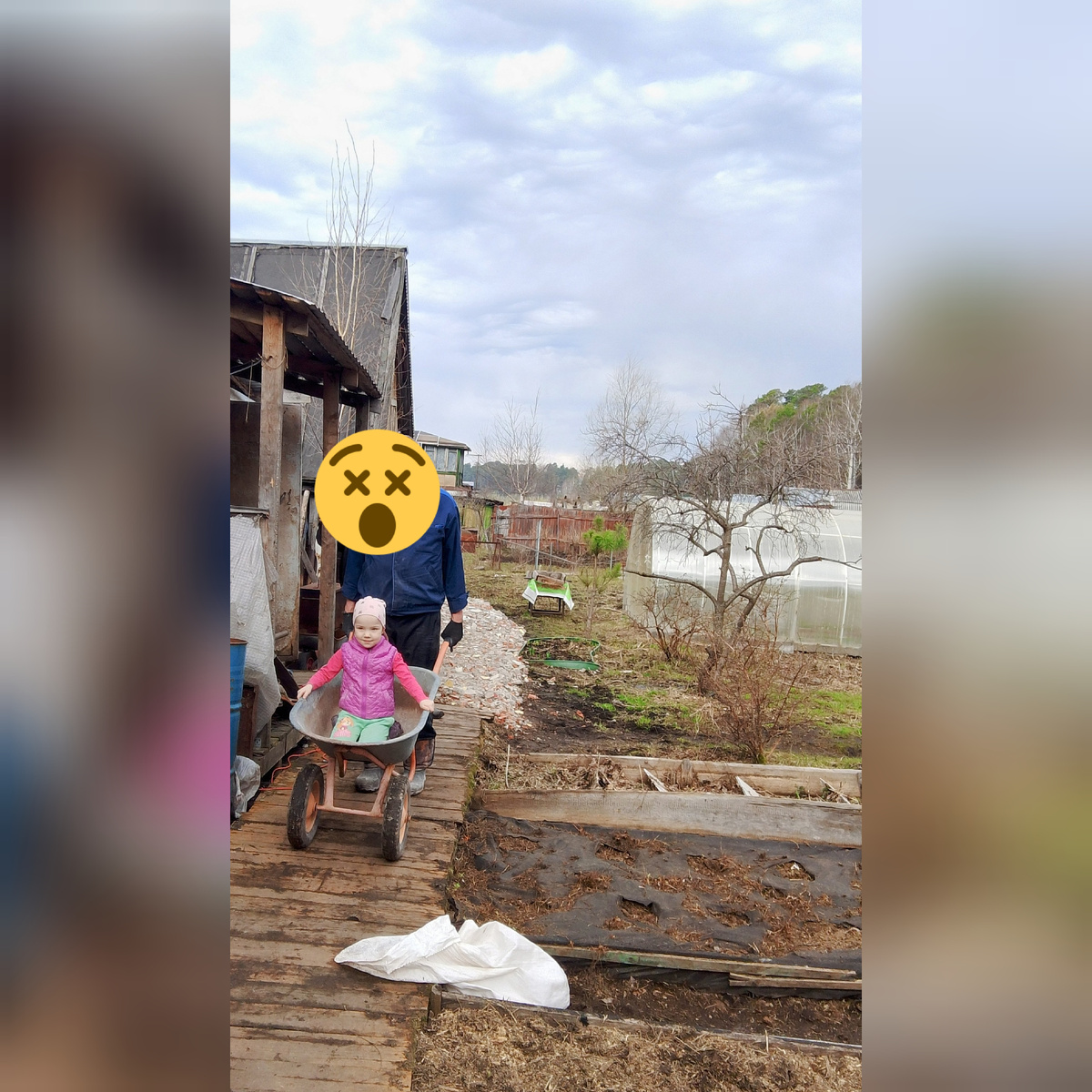 Воскресенье 27 апреля Встала я рано, снова младшие детки решили раз воскресенье, значит надо рано встать около 7:30. Погода с самого утра была хмурой, накрапывал дождик. Ну а у меня в душе было настоящее лето, я знала что я наконец то переношу рассаду из дома в теплицу. Быстро на завтрак сообразила рисовую кашу, сделала нарезку колбаса/сыр накормила детей, мужа и отчима. И всё пошли заниматься своими делами, дочка пошла на улицу помогать деду перевозить бой на тачке, в одну сторону едут груженные обратно внучку катит в тачке А она песенку напевает Ехал Лунтик на тележке, собирал он всем орешки, кому раз, кому три...... Ой, я над ней насмеялась от души Попросила старшего сына погулять с младшим, чтобы я могла начать выносить рассаду из дома в теплицу О большом переезде рассады рассказала тут 👇🏻 Старший конечно молодец, он с Арсюшей сходил и курочек с петушком посмотрели, и собачку и кошек поганяли, ну и так в общем погуляли поиграли. Я пока занималась переносом рассады, сразу
