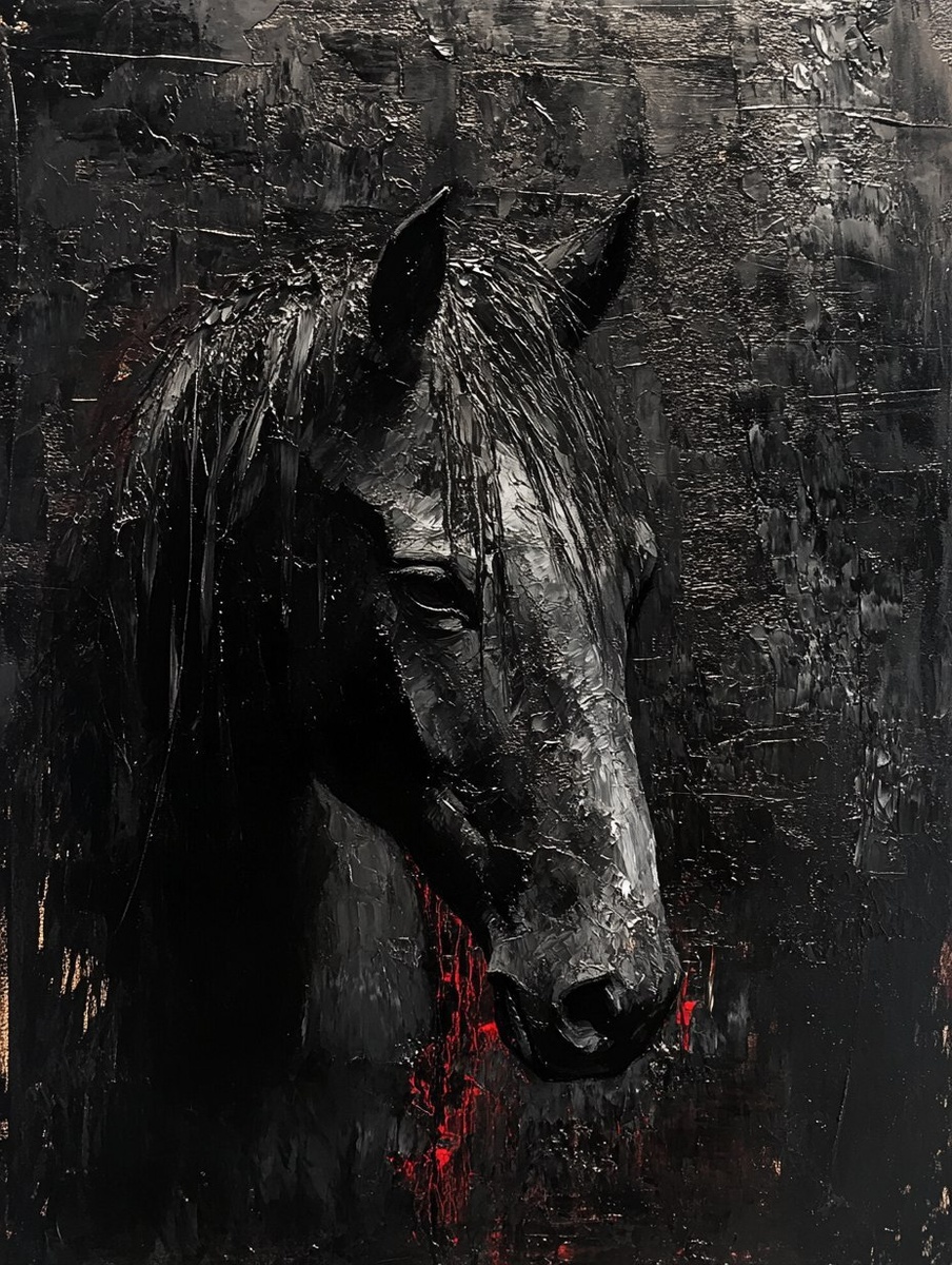 Создано на основе запроса: Abstract Impasto oil painting on canvas with textures and brush strokes of a wild horse in a dark background