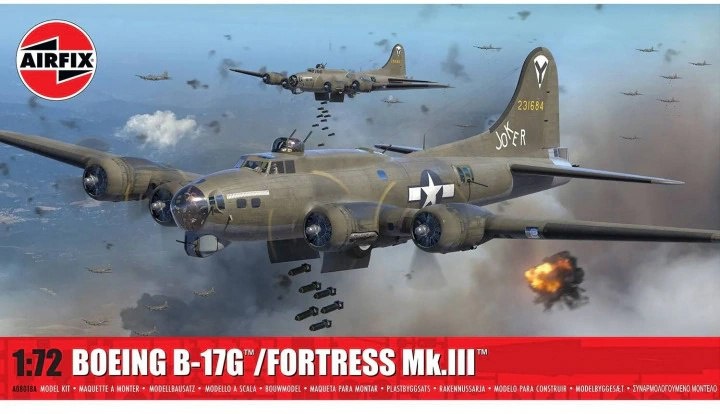 Airfix из Великобритании выпускает с новой декалью свою модель разработки 2017 года Boeing B-17G / Fortress Mk.III в масштабе 1/72: Boeing B-17G / Fortress Mk.III (каталожный номер A08018A)