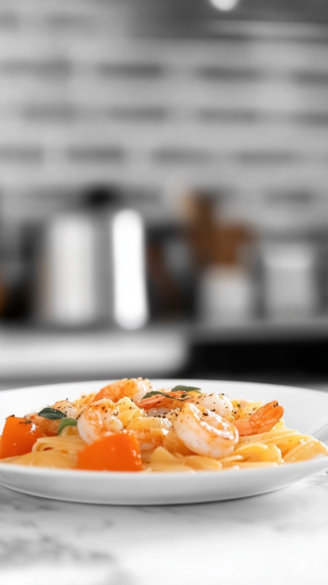 Создано на основе запроса: Title: Marry Me Shrimp Pasta | Close-up Shot right view, taken by a photographer with a high quality camera