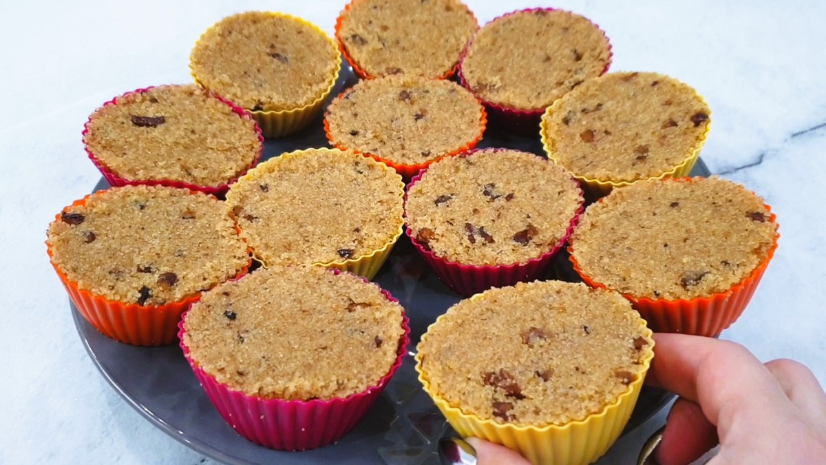 Добавляю дроблённые грецкие орехи. Обжариваю манку с орехами на среднем огне, постоянно помешивая, пока крупа не станет красивого золотисто-коричневого цвета. Потом выливаю один стакан молока и быстро размешиваю. Добавляю второй стакан молока и опять хорошо перемешиваю. Как только масса станет густой, высыпаю стакан сахара и перемешиваю до однородности. Готовую массу раскладываю по формочкам, даю остыть и аккуратно перевор