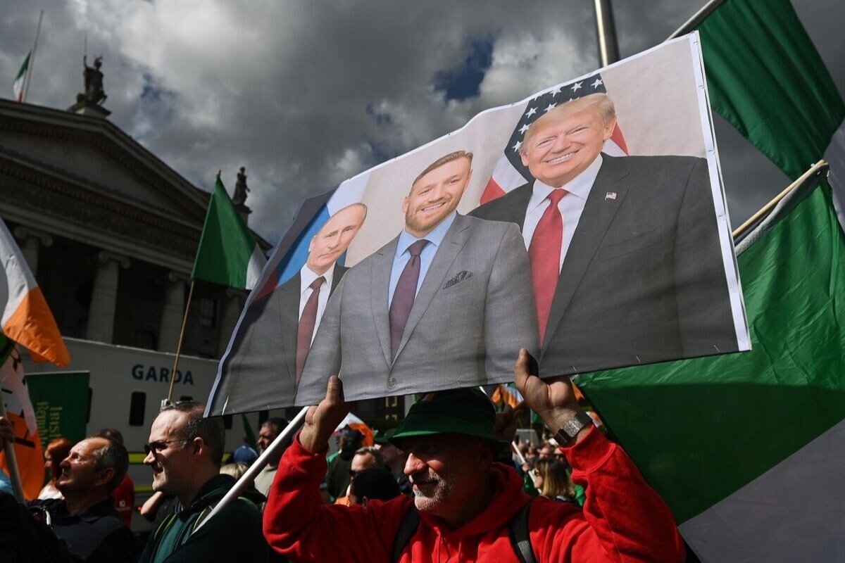 В Дублине, столице Ирландии, состоялась массовая демонстрация, где, как сообщает местная пресса, участники несли плакаты с изображениями президентов Владимира Путина и Дональда Трампа, а также экс-чемпиона UFC Конора Макгрегора.