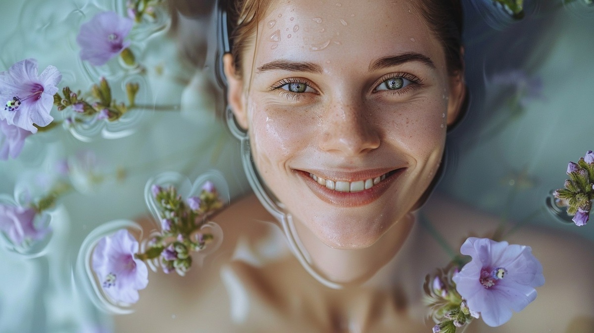 Создано на основе запроса: realistic image of a smiling, white, pretty and young woman,clean face with no drops of water, looking at camera, relaxing spa mood, and few purple little flowers, cistus creticus, around her, in a creative combo, atmospheric and minimal photography, 85mm lens, cinematic angle --- Автоперевод: Реалистичное изображение улыбающейся, белой, красивой и молодой женщины, чистого лица без капель воды, глядя на камеру, расслабляюще Хорошо выглядит? 🤔 https://dzen.ru/id/65c0c65c86e4f837c27b24d7 #ИИ #AI #нейросеть #midjourney #art
