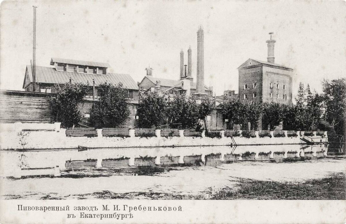 Пивоваренный завод М. И. Гребеньковой 📸Фото 1900-1910 год. ℹ️В 1878 г. на берегу Исети мещанин Клавдий Якимович Гребеньков (ок.1845--1892) основал пивоваренный завод, а в 1887 г. он открыл при заводе заведение искусственных минеральных и фруктовых вод. В 1887 г. Гребеньков К. Я. вываривает от 30 до 40 тысяч ведер. Собственный дом – ул. Златоустовская, 62. (теперь ул. Розы Люксембург — завод безалкогольных напитков). После смерти К. Я. Гребенькова владельцем заводов стала его вдова Мария Ивановна, которая продолжила дело мужа, значительно увеличив объемы производства пива и минеральных вод. В 1914 г. пивоваренный завод был закрыт из-за введения сухого закона. После гражданской войны пивоваренное оборудование было вывезено на другой завод, а производство минеральных и газированных вод было возобновлено в более крупных размерах. Во время нахождения в городе белочехов им разрешили возобновить пивоварение на Исетском заводе для «внутреннего потребления». После установления в Екатеринбург