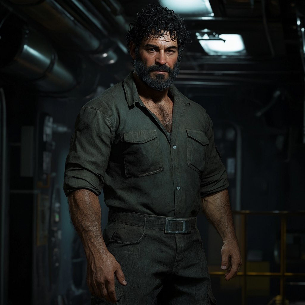 Создано на основе запроса: A muscular man who is a cargo handler on the Wyeland Yutani ship the USCSS Montero