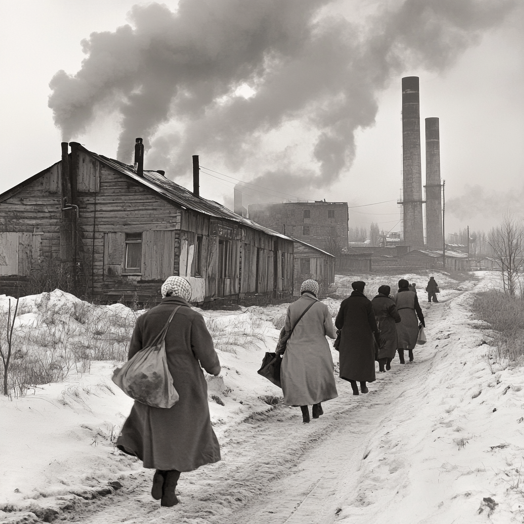 1942 год, Урал. Заводской посёлок под Свердловском гудит день и ночь. Здесь, в тылу, женщины и подростки заменили ушедших на фронт мужчин. Екатерина Иванова, 35-летняя мать двоих детей, стоит у печи хлебозавода. Её руки, покрытые ожогами и мукой, не знают отдыха. Она печёт хлеб для фронта — тот самый, что даст силы солдатам где-то под Сталинградом. Но сегодня её собственные силы на исходе. Екатерина не спит третьи сутки. Норма увеличена: фронт требует больше хлеба, а рабочих рук не хватает. Половина женщин на заводе болеет, другие ушли ухаживать за детьми, которых эвакуировали из западных областей. Екатерина осталась. Её муж, Павел, ушёл на войну в 41-м, и с тех пор от него нет вестей. Дети, Маша и Серёжа, 8 и 6 лет, ждут её дома, но она не может уйти — каждый испечённый каравай может спасти чью-то жизнь. Завод — это ад из железа и огня. Печи ревут, как звери, воздух пропитан запахом угля и жжёного теста. Екатерина месит тесто, её движения механические, но точные. Она знает, что хлеб —