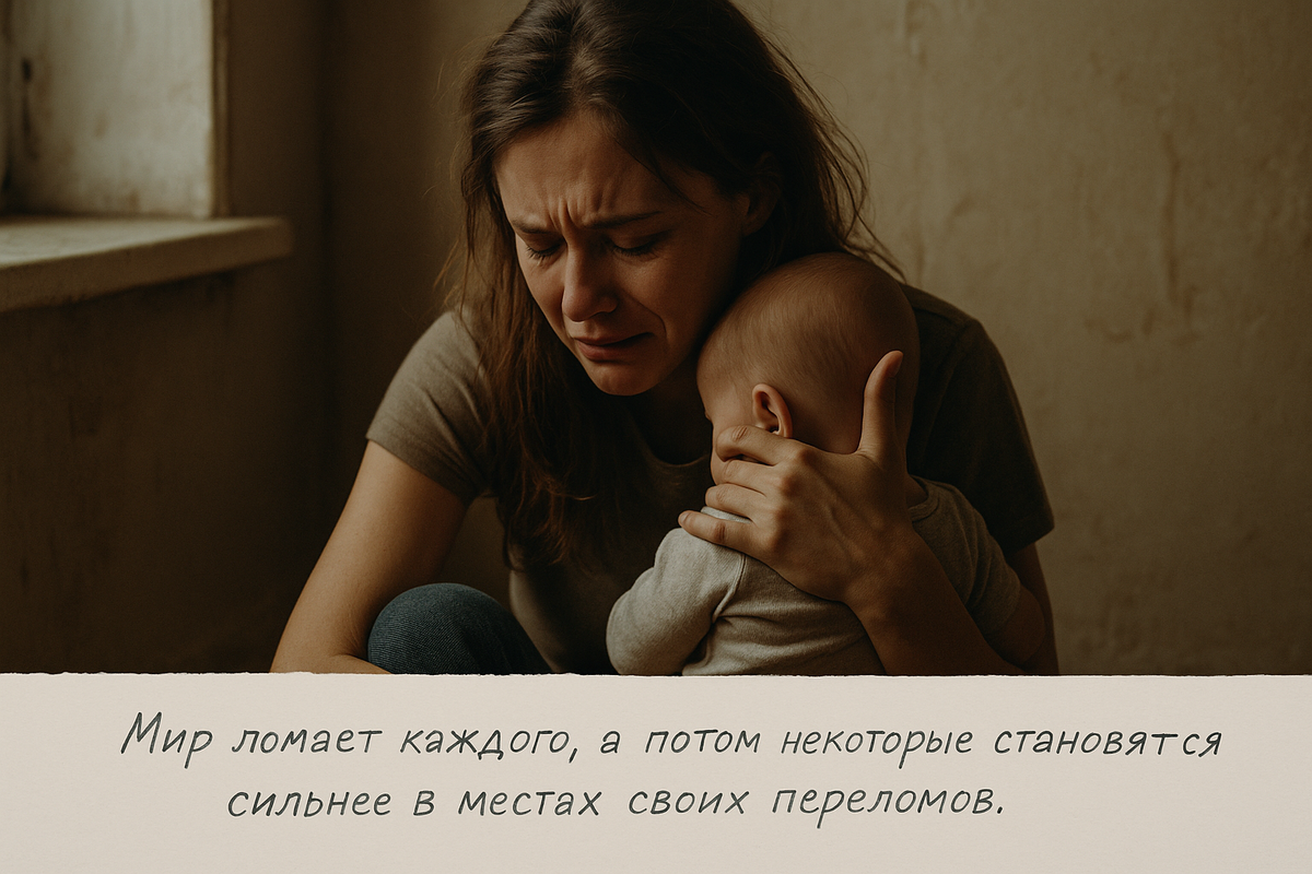 Я родила ребёнка ради него. Я была вся из трещин, вся из боли, но я улыбалась, потому что ребёнок — это смысл. Потому что семью нужно строить, даже если твои собственные стены давно трещат.