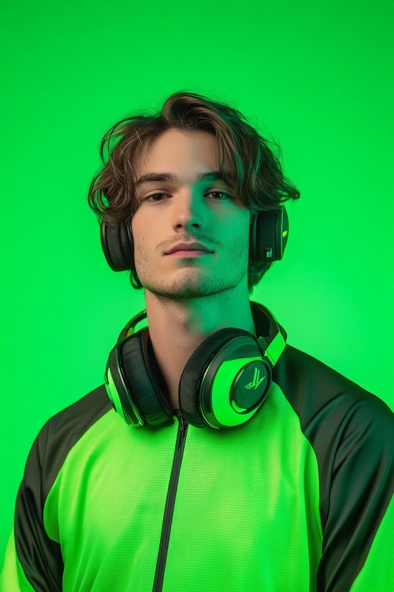 Создано на основе запроса: A mid-chest up portrait of a 25-year-old White man dressed as a professional gamer, standing in front of a solid bright neon green background or soft lime gradient. Oversized headset around neck, neon esports jersey, messy hair. Subtle neon green and black accents. Closed-mouth grin, facing directly at the camera. Sharp studio lighting, vibrant costume tones, clean simple background. Styled like a network game show contestant promo photo. Mid-chest framing, cinematic energy, playful yet professional tone. Studio photography look. --- Автоперевод: Портрет в середине килограмма 25-летнего белого человека, одетый как профессиональный геймер, стоящий перед твердым ярким неоновым зеленым фоном или градиентом мягкого извести. Как тебе эта генерация? 🤔 https://dzen.ru/id/65c0c65c86e4f837c27b24d7 #ИИ #AI #нейросеть #midjourney #art