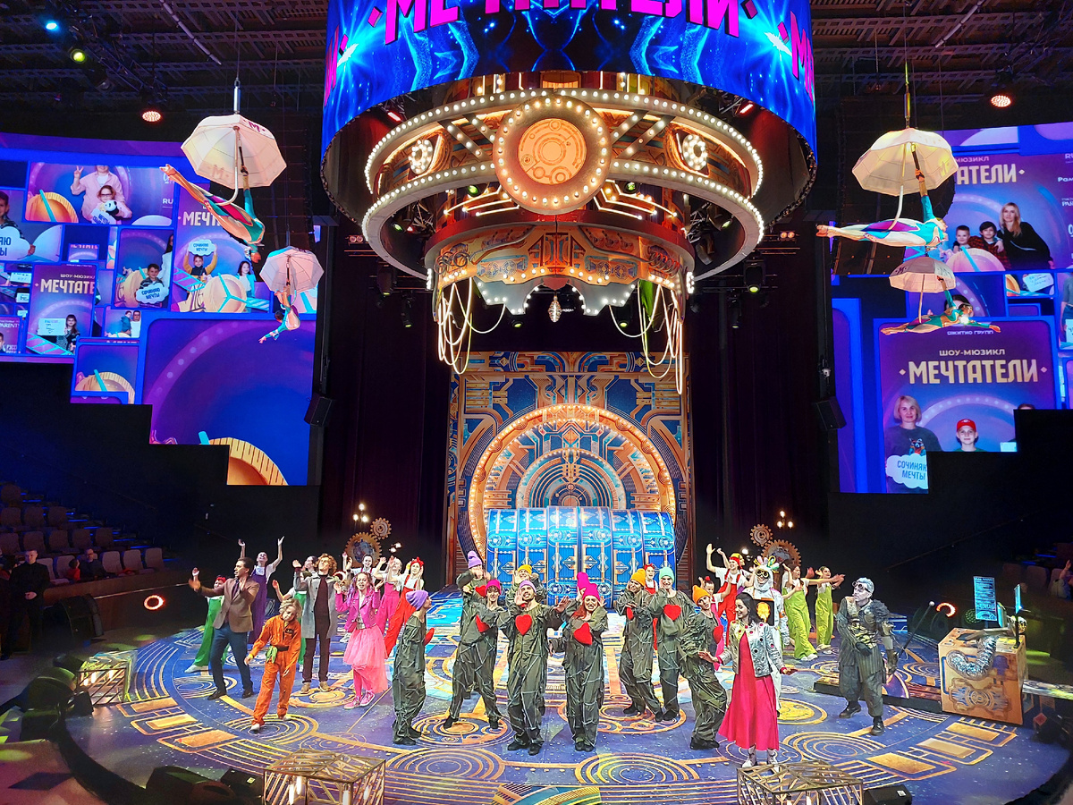 Не специально, но так получилось, что мы попали на последнее шоу сезона, все "кина не будет!". Недавно мы с мужем ходили на уж больно разрекламированный мюзикл Последняя сказка, и на столько разочаровались, что сюда ехать было страшно. А вдруг опять также плохо? На сайте написано что приезжать нужно за 1 час - будут развлекухи для детей. Холл небольшой, но заполненность зала в действительности была примерно на половину, может даже чуть меньше, поэтому всех кто сидел на балконе перед самым началом погнали вниз партера. Мы брали билеты на 4 ряд, чтобы полностью насладиться спектаклем. Видно отлично, полностью видны мимика актеров, при этом отлично видно выступление гимнастов и экраны по бокам, не надо закидывать голову. В фоей перед залом пускают всех - билеты не спрашивают. Сами билеты показываем уже только при входе в зал. В фоей в течение часа можно: Тут ожидали чего то большего, сильно не впечатлило. Туалетов много, есть гардероб, если не охота ждать очередь в туалет после - на