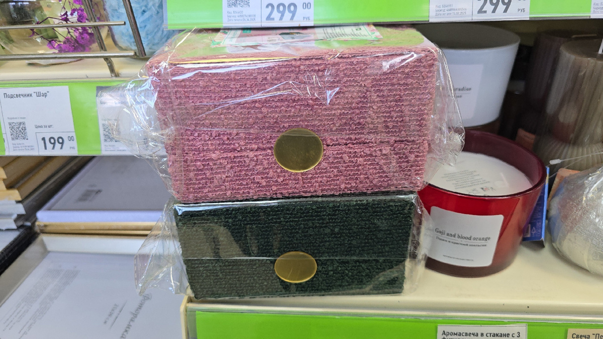 Подойдет для хранения украшений, аксессуаров или памятных мелочей. Состав: полиэстер, картон, акрил. Товар представлен в ассортименте по цвету. Китай. Цена 399 рублей.