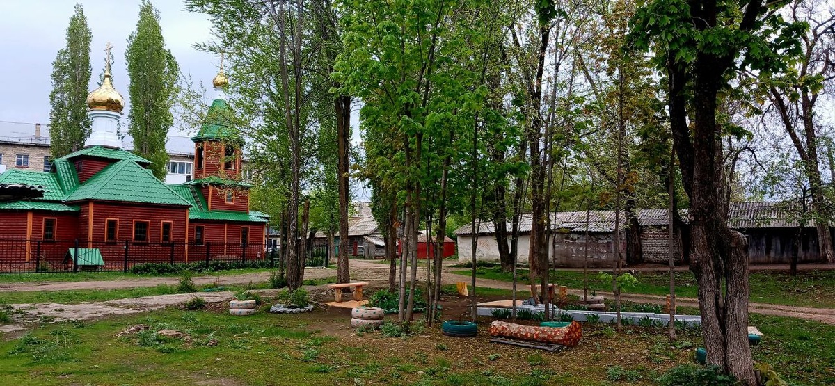 А дальше – ещё сюрпризы! За домом обнаружилось уютное местечко для отдыха: лавочки под тенью деревьев, клумба с цветами-огоньками. И как завершающий аккорд – наша местная церковь Казанской Божьей Матери. Коричневое дерево стен, зелёные крыши и золотые купола, сверкающие в лучах солнца… Кажется, даже воздух здесь звенит по-особенному.
