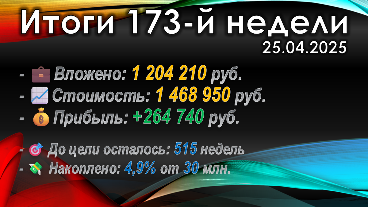 - 📌 Инвестировано: 1`204`210 руб. (+8`000 руб. за неделю)